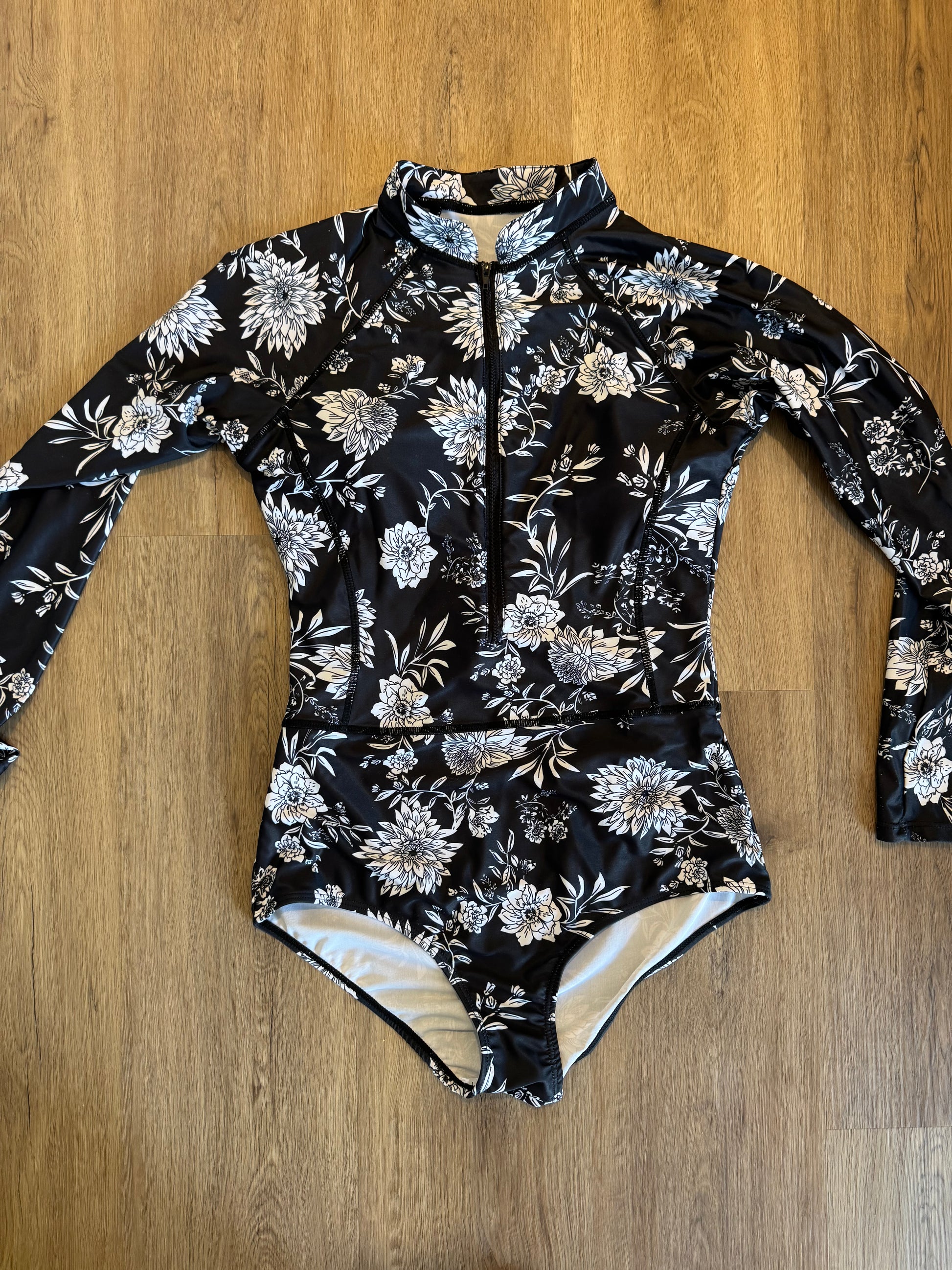 No Brand Black and White Floral Rash-guard