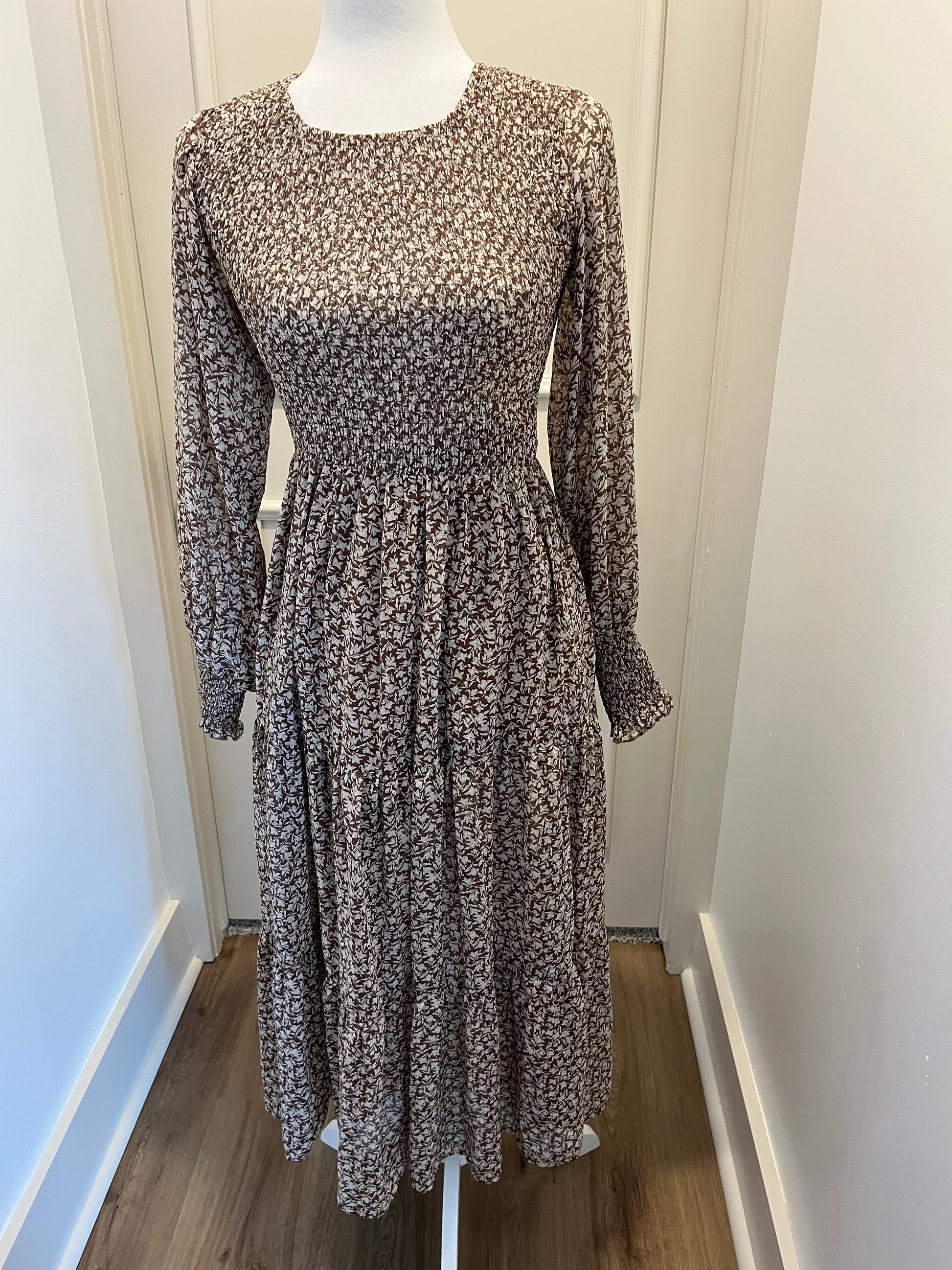 Shop Neighbor Brown Floral Maxi Dress With Ruched Bodice